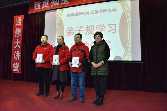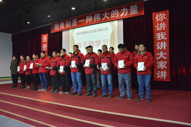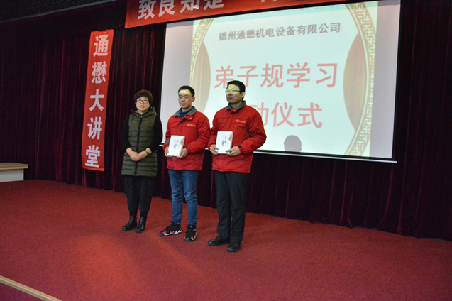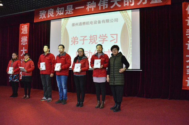 為了大力張揚傳統文化,汲取圣賢思想精華,將愛、恭敬、關懷、誠信、互助和謙卑的傳統美德落實到每一個人的內心深處,進一步深化企業價值觀,成就員工幸福人生。2016年11月26日,德州通懋機電設備有限公司在通懋大講堂舉行了,“傳國粹之精華,承企業之宏志”---學習踐行《弟子規》啟動儀式 。