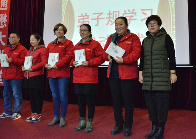 最后,舉行贈書儀式,由蘇愛英女士向全體通懋家人贈與由蔡禮旭老師編寫的《弟子規四十講》。