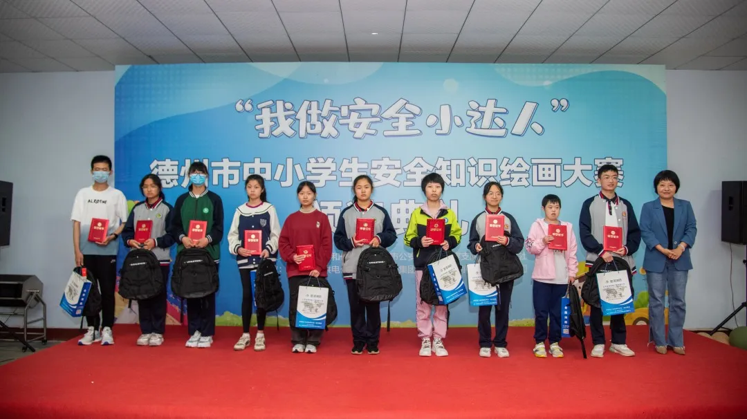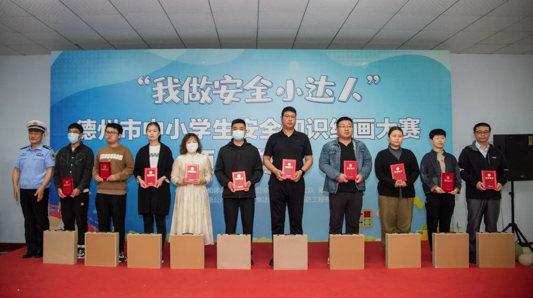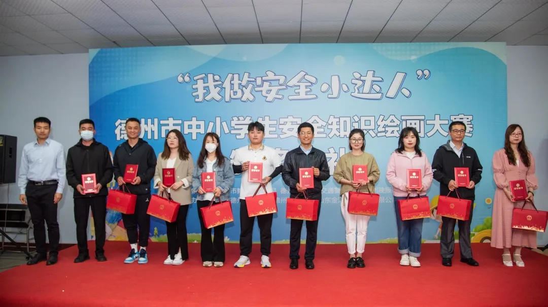 2023年5月27日上午,“我做安全小達人”德州市中小學生安全知識繪畫大賽活動頒獎典禮在德州通懋集團隆重舉行。出席本次典禮的有德州市公安局交通警察支隊黨委委員、副支隊長王東、德州市教育和體育局安全科科長歐杰、德州市公安局交通警察支隊宣傳教育科科長楊紅省、德州晚報社副社長單歆歆、德州通懋集團董事長蘇愛英、山東金澤消防工程有限公司董事長沙志勇。